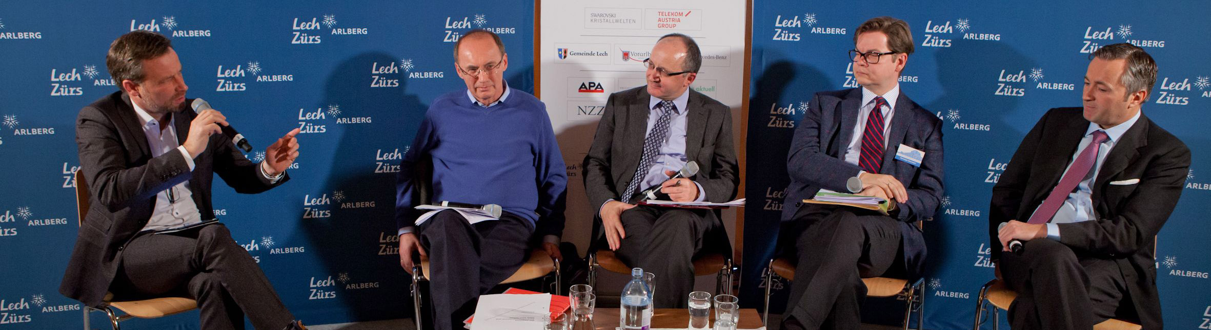 Unter der Leitung von Markus Spillmann, Chefredaktor der NZZ, diskutieren die Teilnehmer zum Thema „Unternehmen Politik – kritische Reflexionen zur Wettbewerbsfähigkeit von Österreich und Europa“